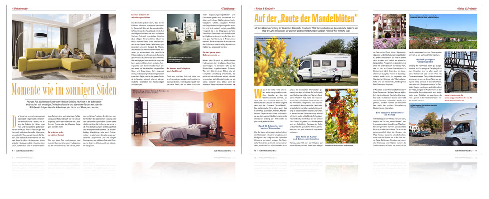 • Themenspektrum: Moderner Ratgeber, Wohnen, Immobilien, Lifestyle, Reisen und Kulturelles, Wellness und Gesundheit, Senioren und Familie, Fashion und Beauty, Automobiles und mehr